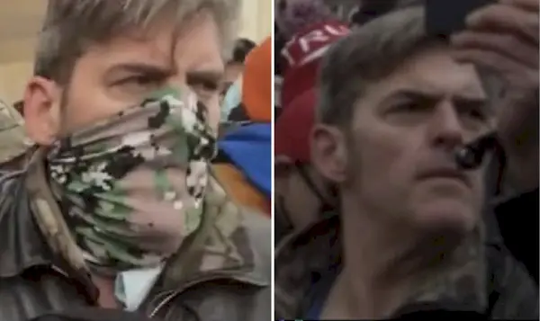 Jay Johnston, 54, werd gespot terwijl hij tegen de politie vocht in bewakingsvideo's op het lagere westelijke terras van het Amerikaanse Capitool, waar relschoppers zich met geweld een weg probeerden te banen door een politielijn om zich een weg te banen naar het Congres, zeggen federale aanklagers.