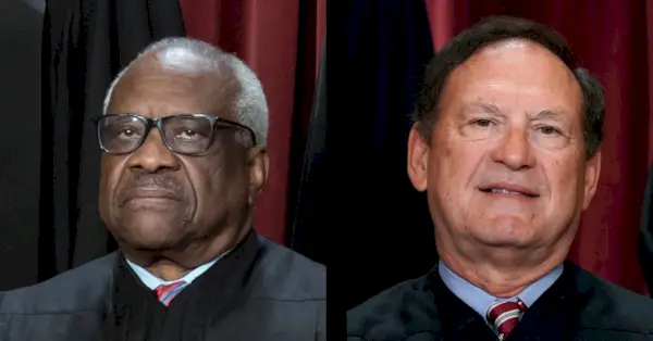 Links: Verwante Rechter van het Hooggerechtshof Clarence Thomas. Rechts: Verwante Rechter van het Hooggerechtshof, Samuel Alito. (Alex Wong/Getty Images.)